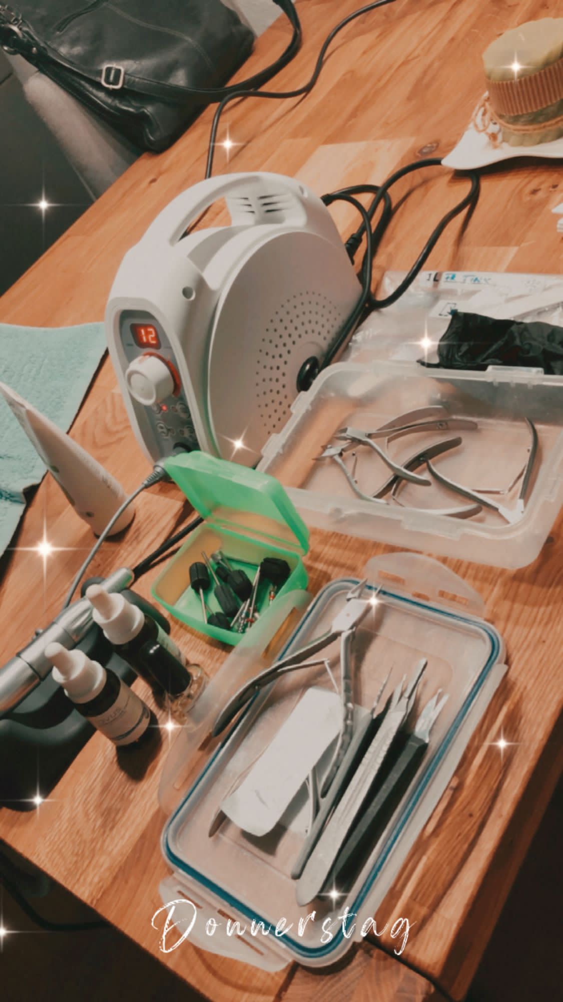 Selbstverständlich werden bei jedem Kunden nur sterile Klingen frisch aus der Verpackung und eigene Feilen & Fräseraufsätze verwendet.